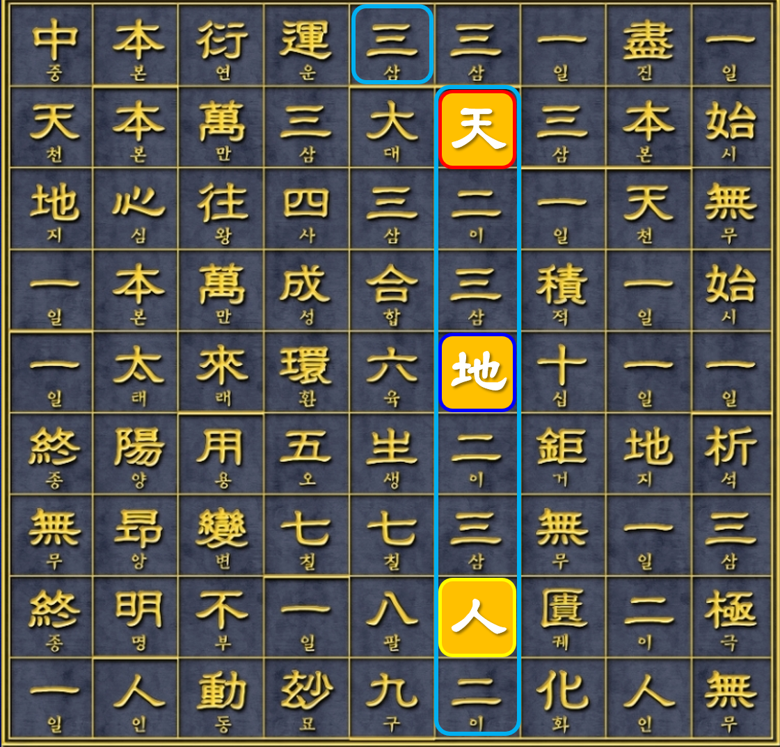 [천이삼 지이삼 인이삼, cheon yi sam ji yi sam in yi sam]